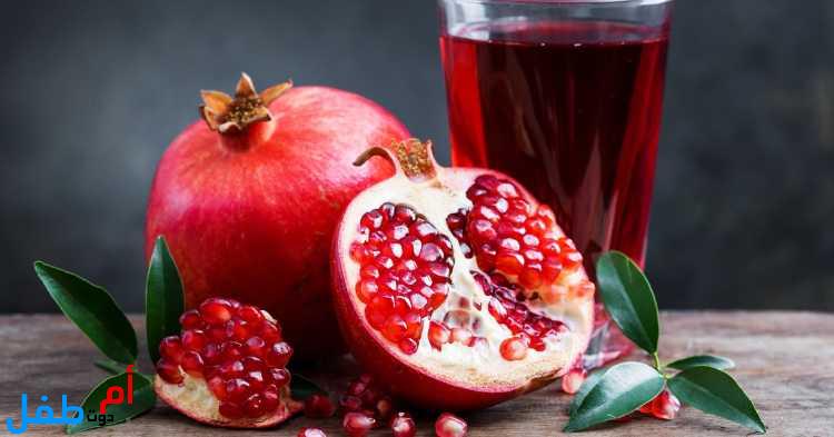 - كوب من عصير الرمان يحتوي على 60 جرام من الفولات، فجسمك يحتاج إلى الفوليك أسيد خلال فترة الحمل حيث أنه ضروري جداً لنمو الجنين، حيث يحميه من تشوهات الأجنة.